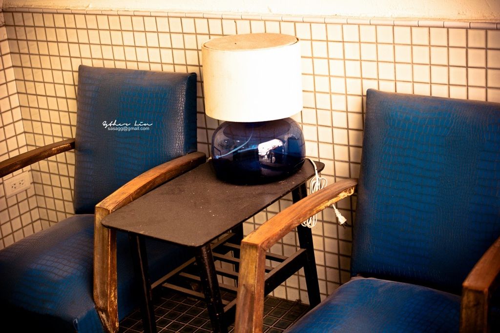 2F的陽台走出去,有著一組孔雀藍早期的皮沙發。