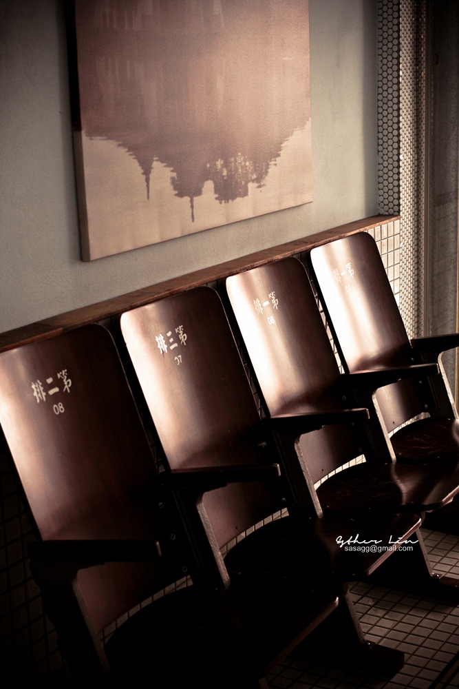 一進門就是爸爸媽媽那個年代古早的電影院座椅...